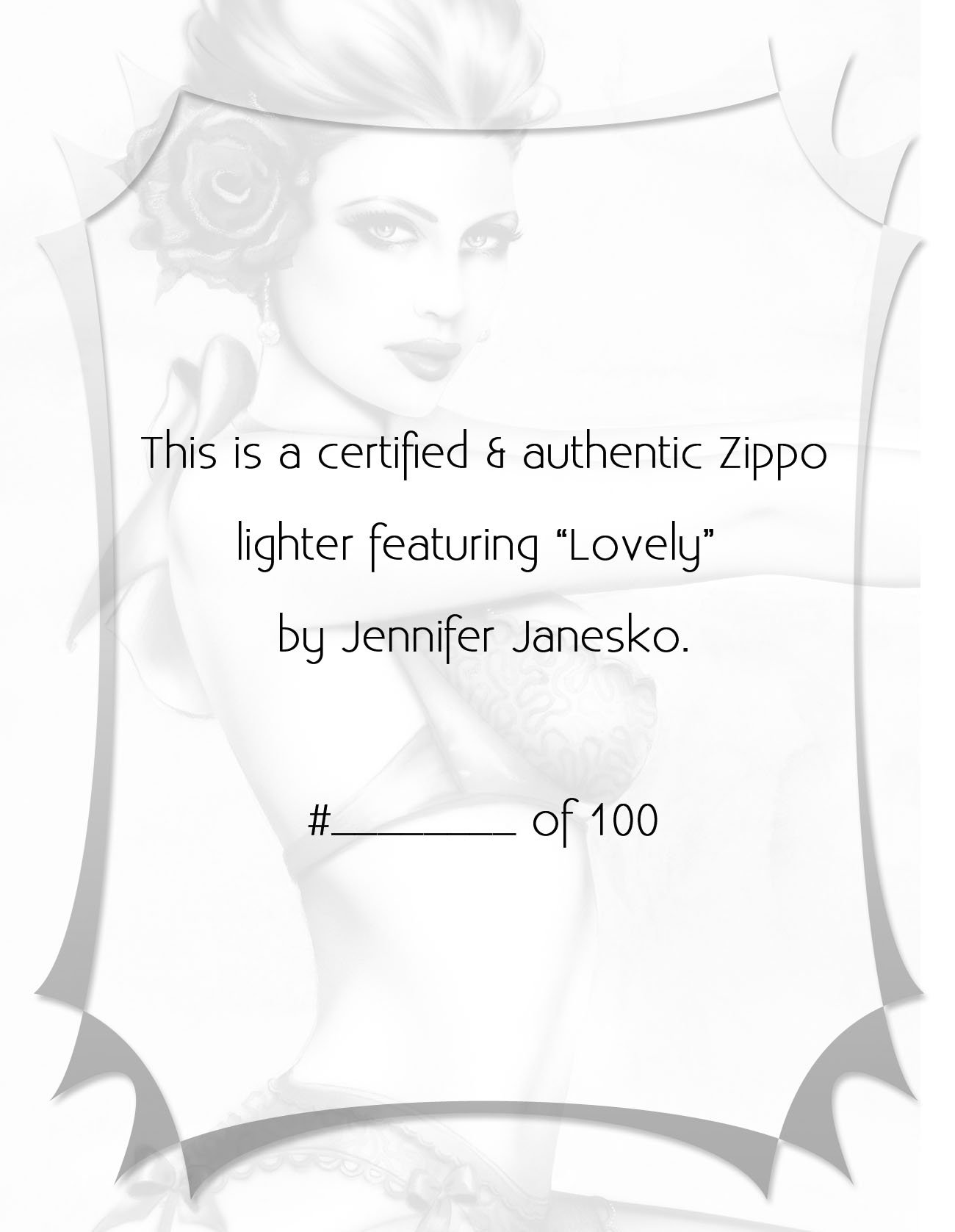 Only 100 of this style was created and very few remain. Each Zippo comes with a certificate of authenticity signed by the artist and is presented in a collectors box. The edition number of the Zippo is engraved on the surface of the Zippo.